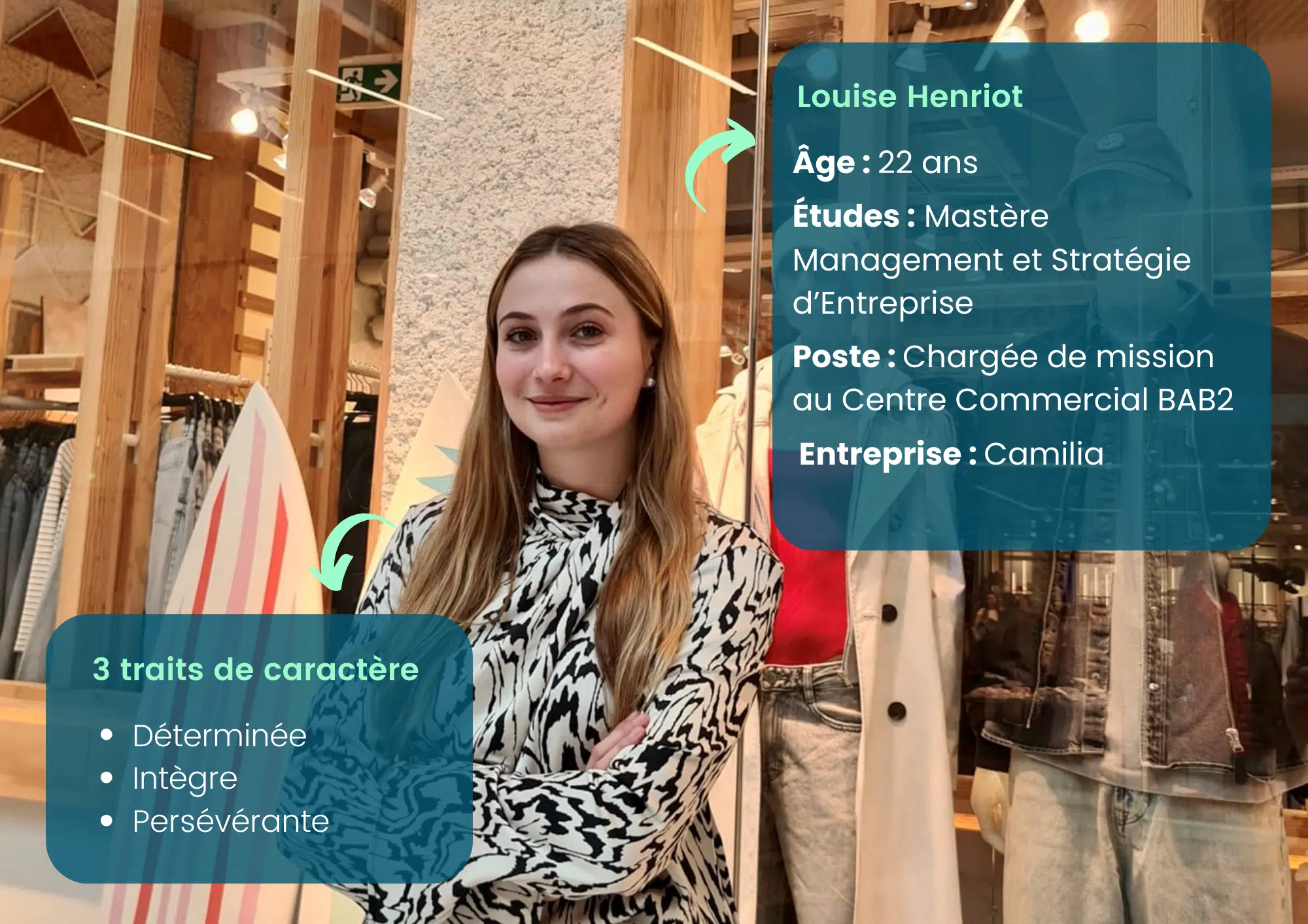 J’ai ensuite intégré le Mastère Européen Management et Stratégie d’entreprise de l’IFPC en alternance en tant que chargée de missions pour le Centre Commercial BAB2.